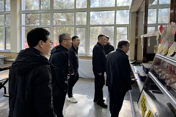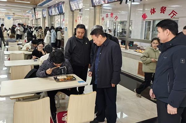 调研中,裴校长先后深入霍林河校区桃李园餐厅、西拉木伦校区学子园餐厅、滨河园区丁香园餐厅,重点对就餐用具洗涤消杀、整体环境卫生安全、从业人员健康管理、进货查验、食品留样、食材及餐具用具自行检测等工作进行调研指导,听取了后勤处相关工作人员对食堂日常安全管理工作开展情况的汇报。餐厅内,裴校长与就餐学生亲切交谈,仔细询问学生在用餐环境、餐饮价格、菜品种类等方面的感受,听取学生们对学校食堂的建议需求。