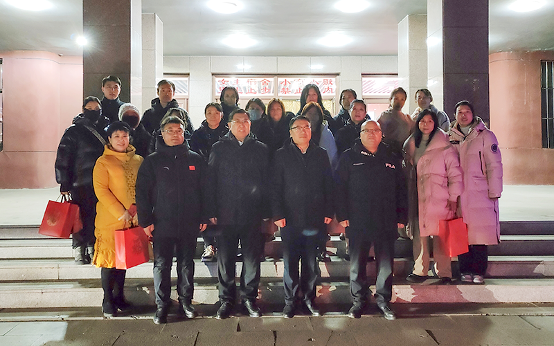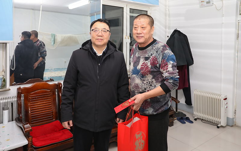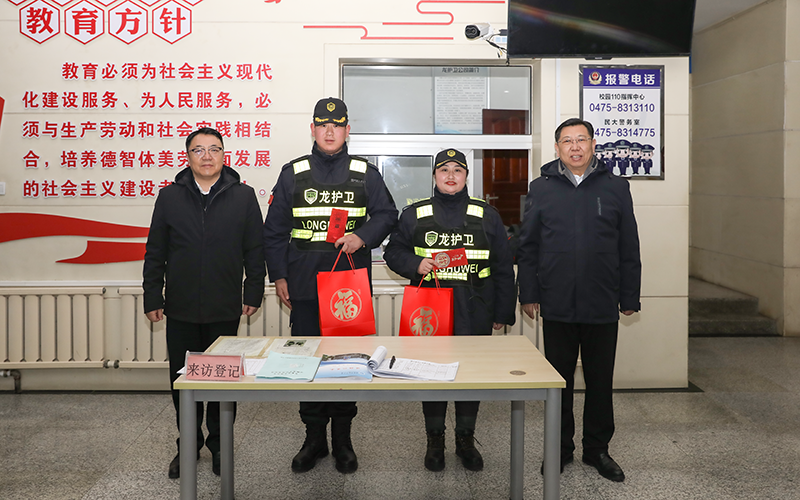 孟祥宏、王百涛一行先后到霍林河校区励志楼门卫值班室、变电所、学生公寓6号楼值班室、校区西门,西拉木伦校区南门、后勤处水务中心、留学生公寓,滨河校区安全管理处及民大派出所、学生公寓1号楼值班室慰问值班值守人员,详细了解节日期间工作安排、应急值守等情况。每到一处,校领导都与值班值守员工握手问候、亲切交谈,嘱咐他们要注意保暖、保重身体,并送上满载情意的春节慰问品。孟祥宏充分肯定了值班值守员工舍小家为大家、保障学校安全稳定运行的担当奉献精神,他代表学校党政领导班子及全校师生向所有坚守在一线岗位上的员工及家人拜年,祝福大家新春快乐,身体健康,阖家幸福。