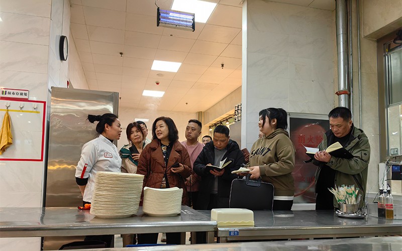 讲座结束后,于丽娟与工作人员一同进入我校滨河园区丁香园餐厅进行现场培训,并结合讲座内容,对设施设备的设置与人员的操作规范等提出了整改意见与建议。