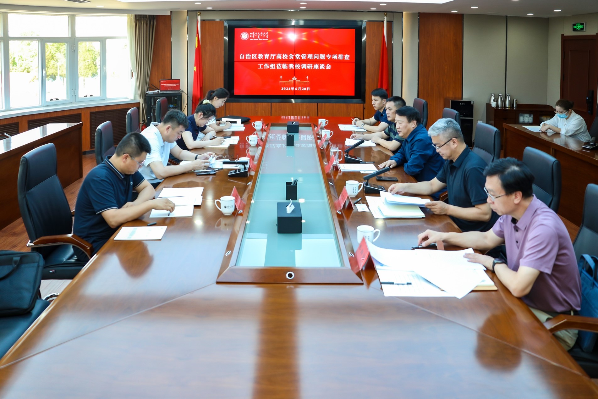 6月28日上午,自治区教育厅高校食堂管理问题专项排查第三工作组内蒙古化工职业学院后勤处处长汪涛一行4人到我校开展食堂管理问题专项排查工作。校党委委员、副校长裴志利,后勤处相关负责同志陪同座谈调研。