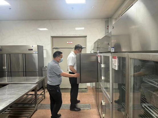 座谈会后,检查组一行深入我校滨河园区丁香园餐厅就餐区、后厨、面点间、留样间等区域,现场检查了食品经营许可证、食品添加剂使用记录、人员健康证,环境卫生、食材使用、食品留样、信息公开等情况;并查阅了“校园餐”安全管理专项整治重点内容材料及学校主体责任落实、加强日常监管、规范承包经营、节约宣传等情况材料。